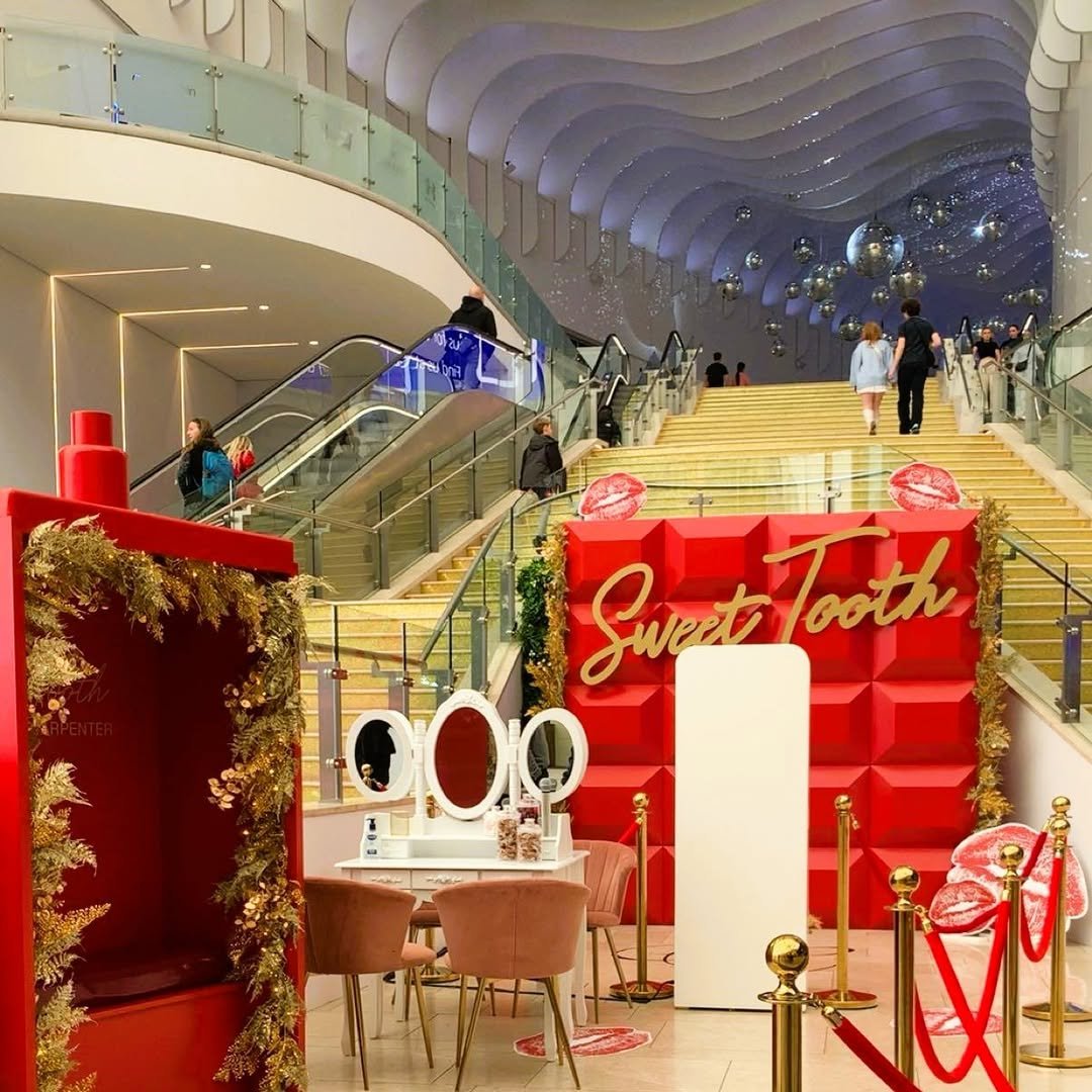 Creator brought Sabrina Carpenter’s Sweet Tooth perfume to life with a one-of-a-kind dressing room activation ahead of her sold-out show at the O2 Arena. The immersive experience featured a chocolate chunk-inspired set fabricated and crafted by our team, including a larger-than-life perfume bottle with the signature chocolate chunk texture on the reverse - perfect for relaxing or snapping the ultimate photo. A giant chocolate chunk backdrop completed the scene, providing a striking visual for guests to pose against. The oversized chunks were CNC-cut from polystyrene and hand-finished in luxe red, offering a bold, playful nod to the fragrance’s design.