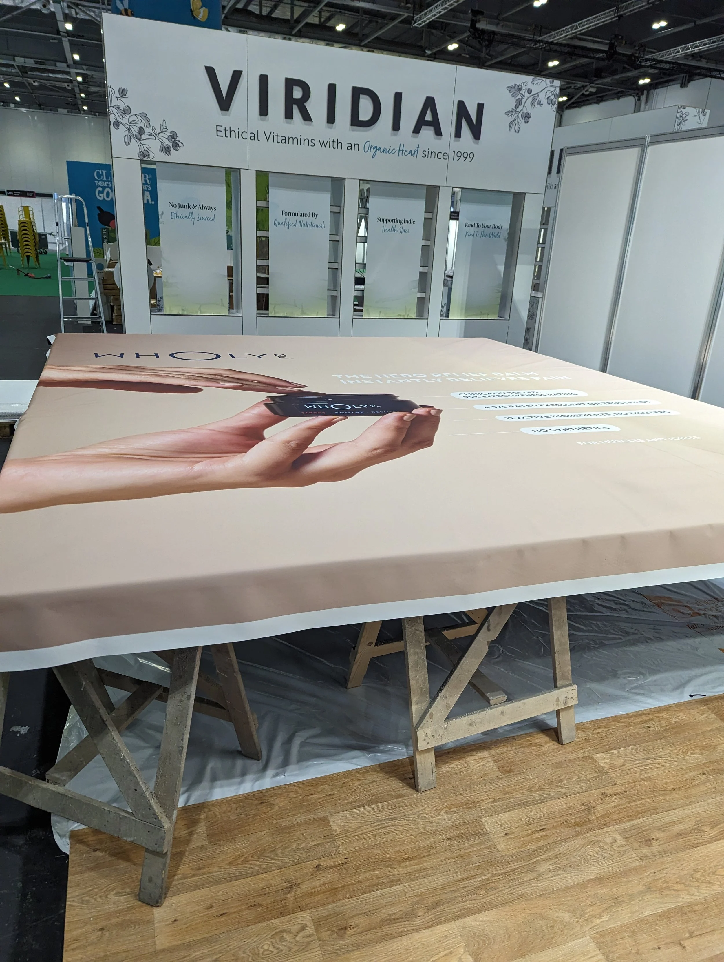 In keeping with the philosophy of the show we have used only sustainable materials on this stand. No single-use plastics or laminates but instead canvas, paint and timbers.